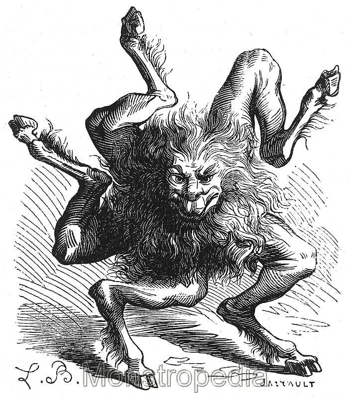 Buaer appears with the head of a lion and five goat legs surrounding his body to walk or roll in every direction. Other traditions give him the shape of Sagittarius, which is as a centaur with a bow and arrows.